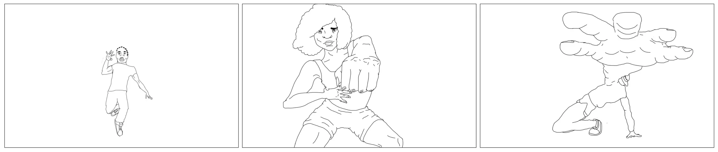 I then went through the sections of the videos I had chosen and sketched basic figure studies for every frame.